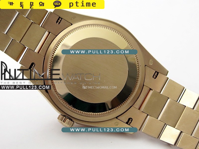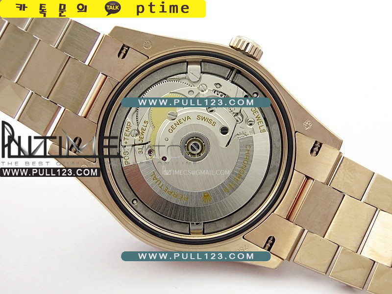 케이스 - 904L 고강도 스텐레스 스틸 / 18K 로즈 골드 IPG 특수이온 강도금 (내부 텅스턴 추가로 정품 무게 135g에 아주 가깝습니다.)