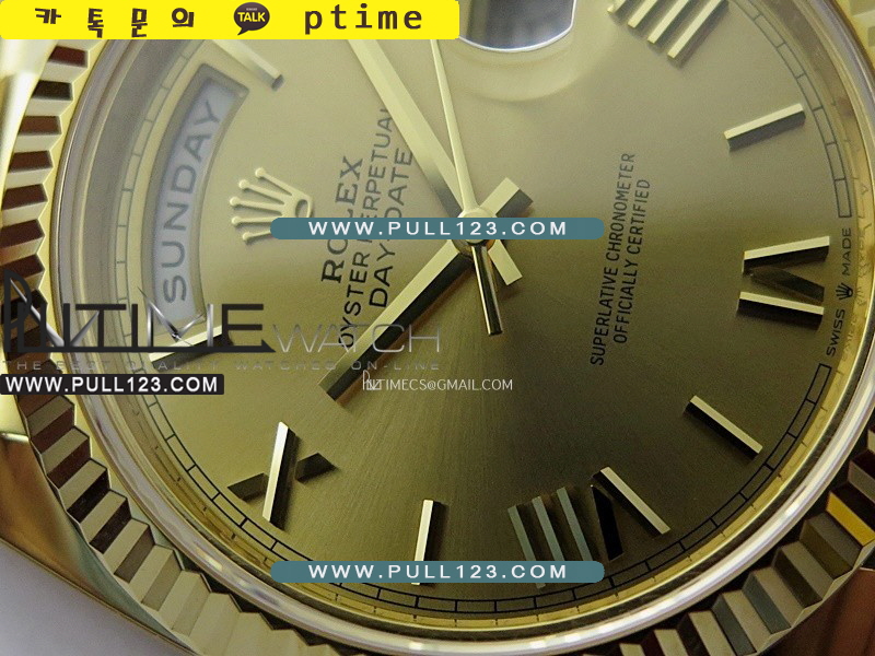 케이스 - 904L 고강도 스텐레스 스틸 / 18K 옐로우 골드 IPG 특수이온 강도금 (Cu-W 메탈을 추가하여 정품과 동일한 무게로 맞췄습니다.)