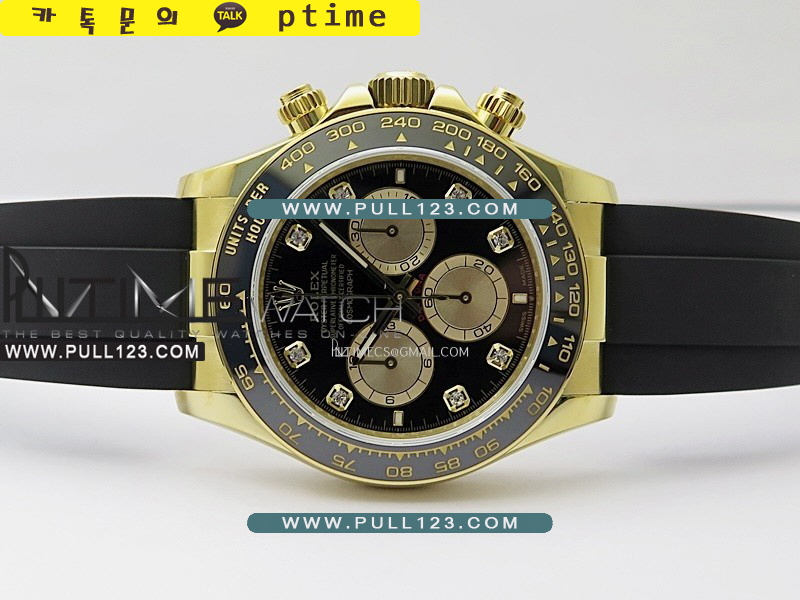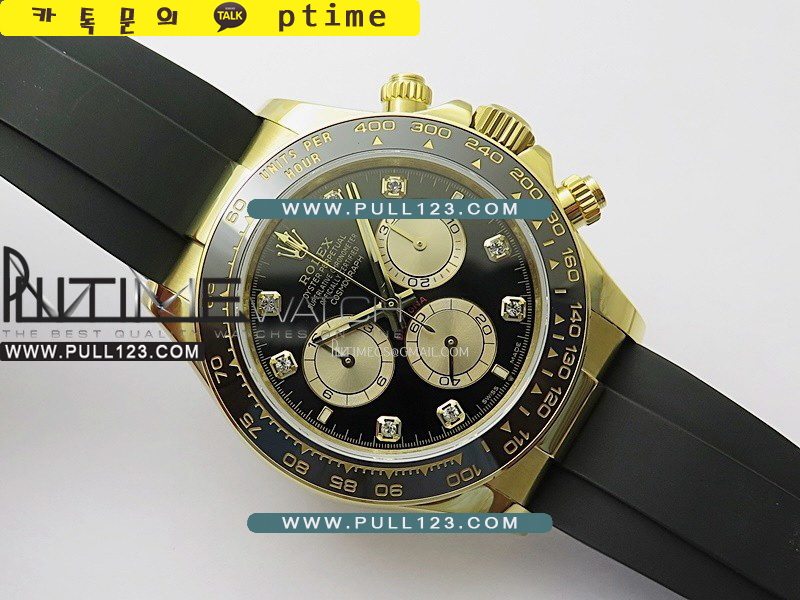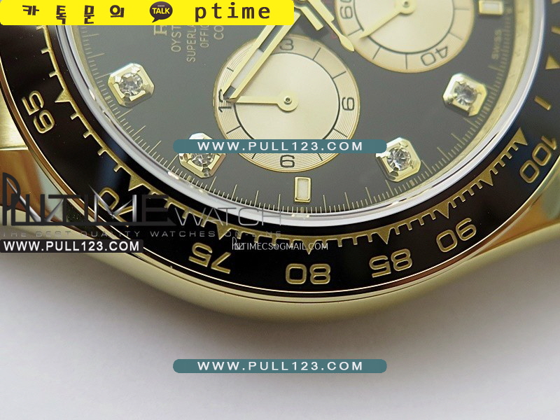 베젤 - 스틸로 감싼 블랙 지르코늄 세라믹 타키미터 베젤 / 실제 금도금 베젤 인서트, 정품과 동일한 모양 및 깊이입니다.