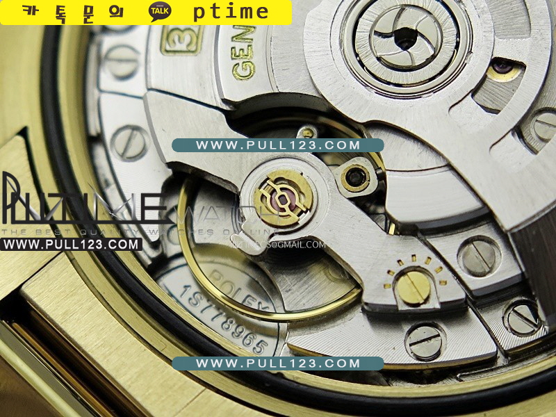 케이스 - 904L 고강도 스텐레스 스틸 / 옐로우 골드 IPG 특수이온 강도금 / 텅스턴 금속을 추가하여 정품과 동일한 무게로 맞추었습니다.