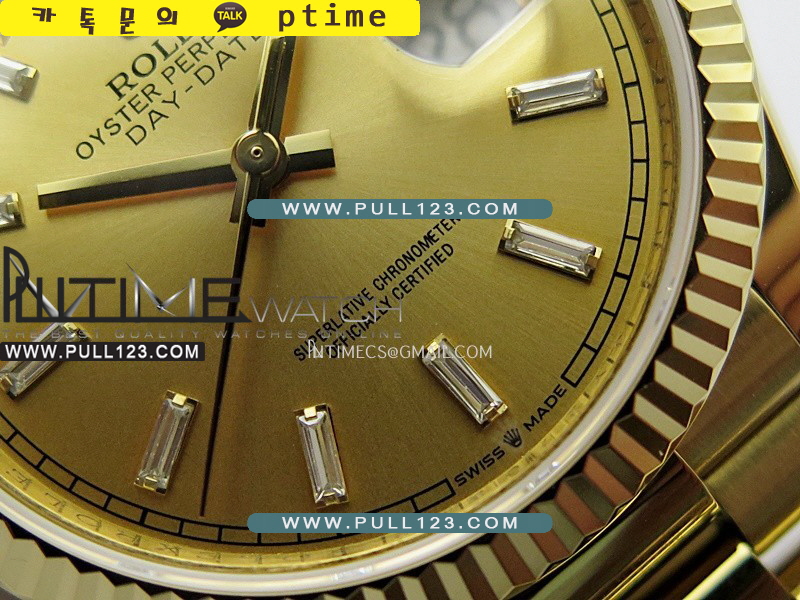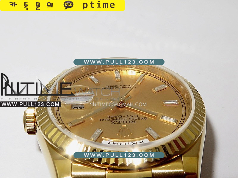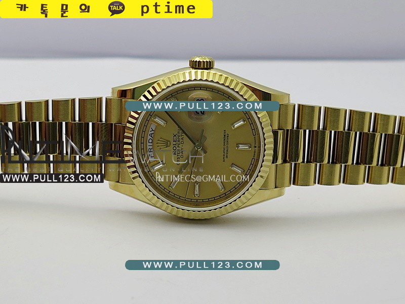 케이스 - 904L 고강도 스텐레스 스틸 / 18K 옐로우 골드 IPG 특수이온 강도금 / CU 금속을 추가하여 정품과 동일한 무게로 맞추었습니다.