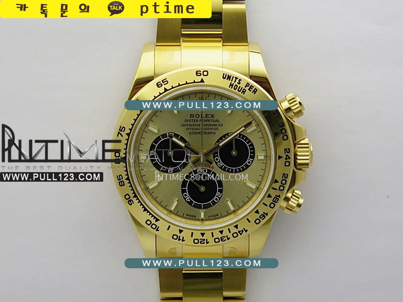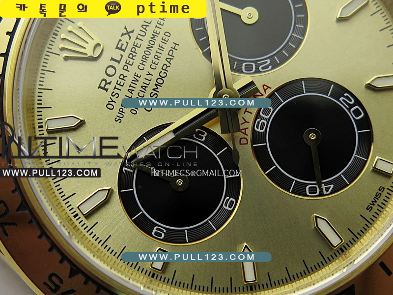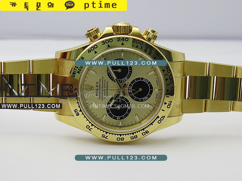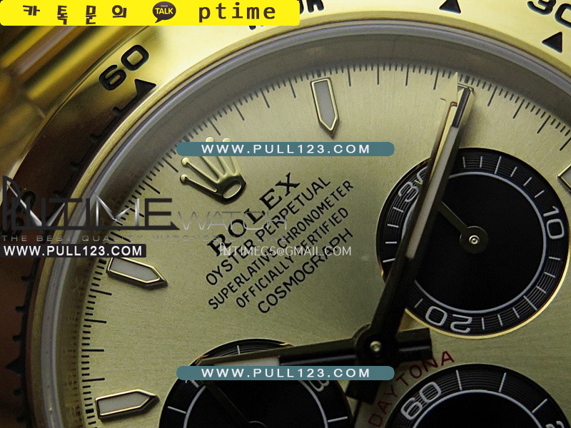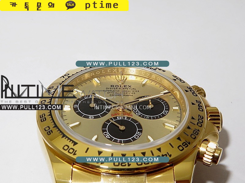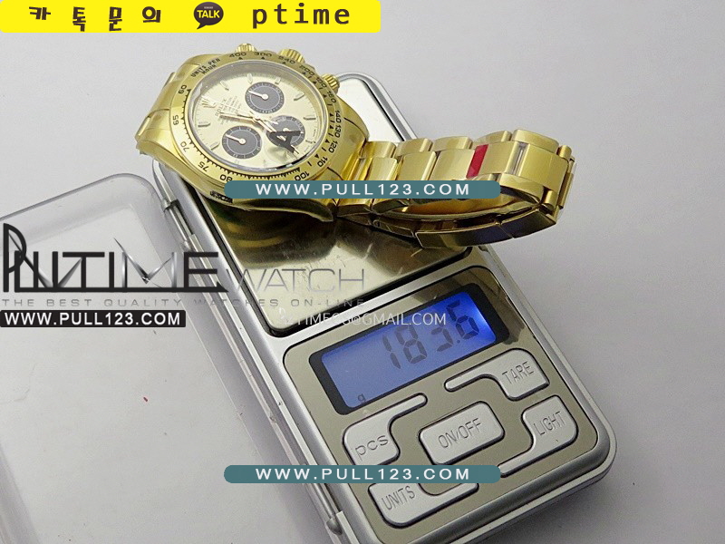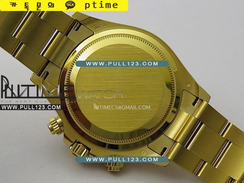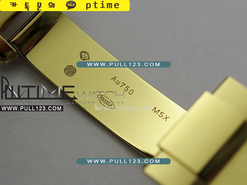 케이스 - 904L 고강도 스테인레스 스틸 / 18K 옐로우 골드 IPG 특수이온 강도금 / Cu-W 금속을 추가하여 시계 무게를 정품과 거의 동일하게 늘렸습니다.