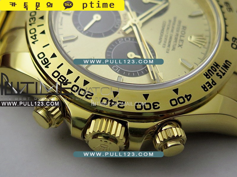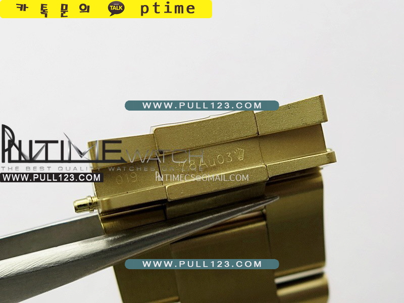 밴드 - 904L 고강도 스테인레스 스틸 / 18K 옐로우 골드 IPG특수이온 강도금 / Cu-W 금속을 추가하여 시계 무게를 정품과 거의 동일하게 늘렸습니다.