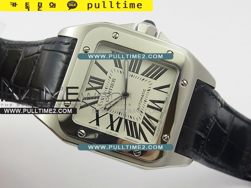 까르띠에 산토스 100 화이트 다이얼 가죽 스트랩 모델이에요